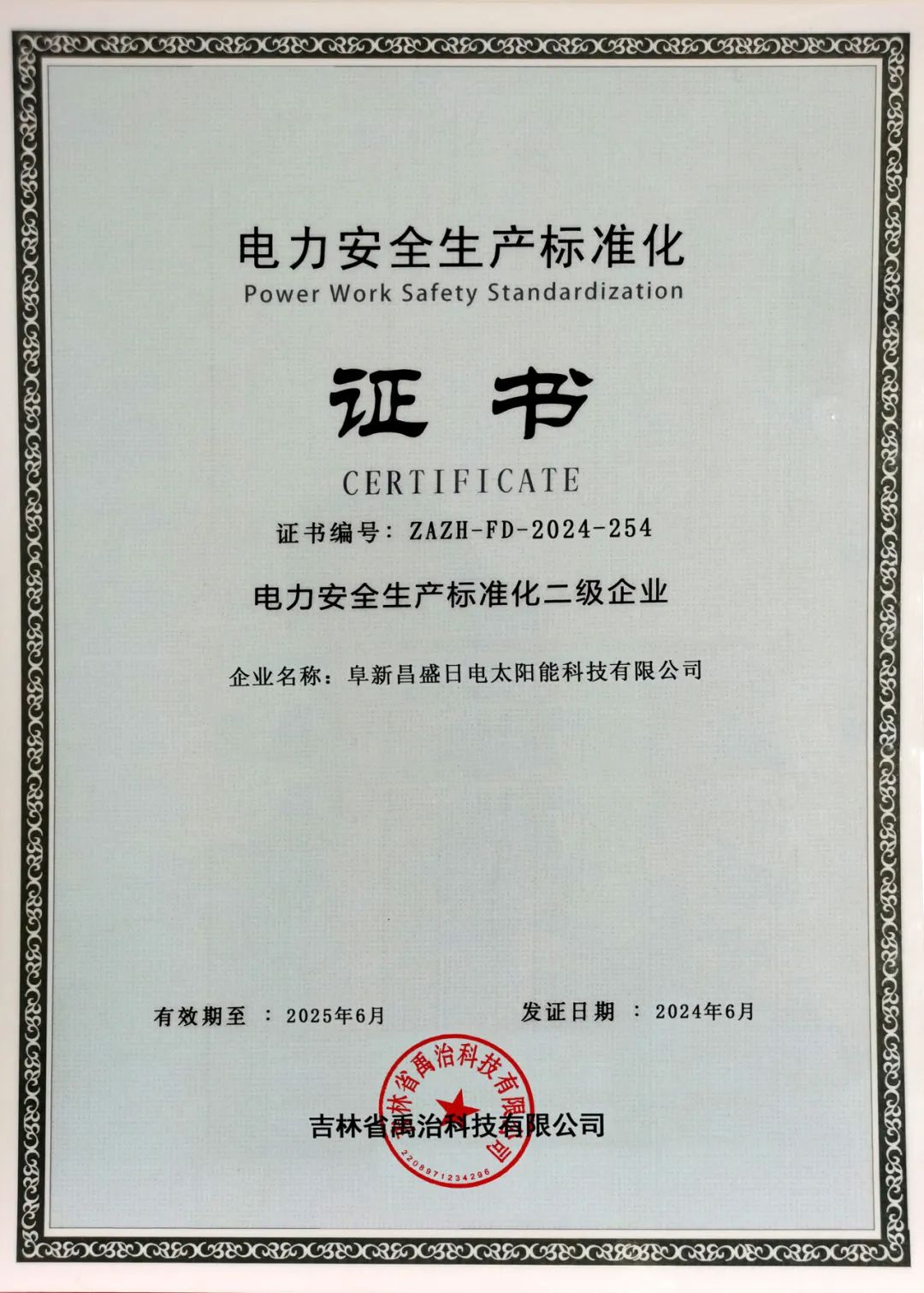 近日,开云(中国)旗下新能源集团所属的三家项目公司阜新昌盛日电太阳能科技有限公司、东丰丰盛太阳能科技有限公司和大庆长元能源开发有限公司,成功通过了电力安全生产标准化企业二级达标认证,并荣获了电力安全生产标准化二级企业证书。这一成就是青岛城投新能源集团在安全生产标准化和安全管理体系建设方面取得的重要进展。