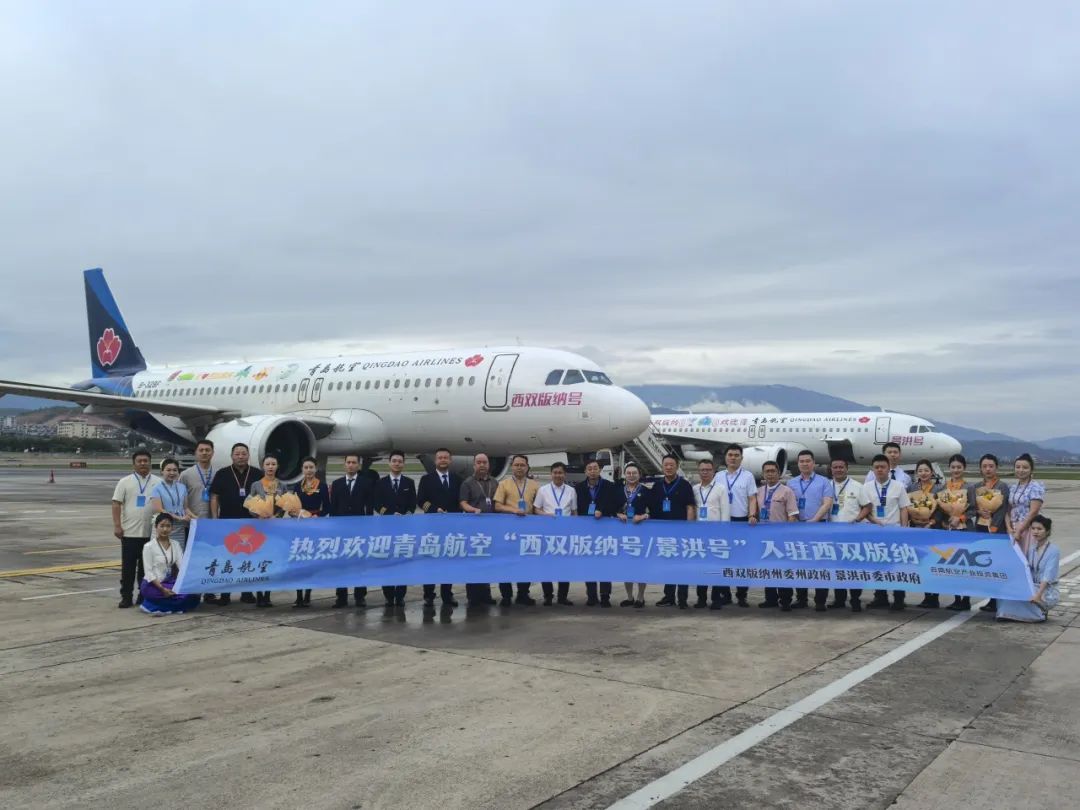 当天,青岛航空“西双版纳号”和“景洪号”两架空客A320-NEO飞机首次亮相西双版纳,并带领着307名乘客落地西双版纳嘎洒国际机场,象征着三方深化合作、共谋发展的坚定决心。