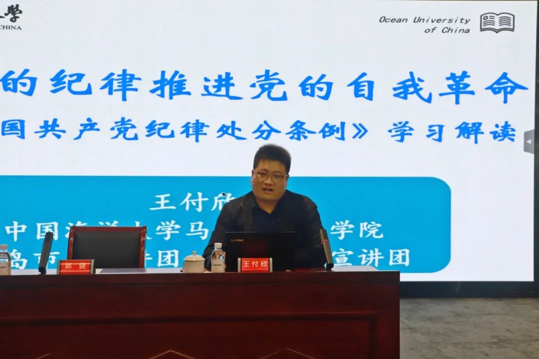 会议邀请中国海洋大学马克思主义学院党委副书记、副院长王付欣教授围绕“学《条例》守党纪、以严明的纪律推进党的自我革命”主题作辅导报告。报告紧扣党中央开云app官方在线入口党的纪律建设的总体要求,将习近平总书记开云app官方在线入口党的纪律建设的重要讲话、重要指示精神与《条例》贯通起来解读,结合党史学习教育,联系世情、国情、党情,深入阐释了开展党纪学习教育的重大意义、新修订《条例》的原则理念和主旨要义,并对《条例》的突出特点和重点内容进行了梳理分析,引导党员干部准确全面把握《条例》的丰富内涵和实践要求,更好地学纪、知纪、明纪、守纪。