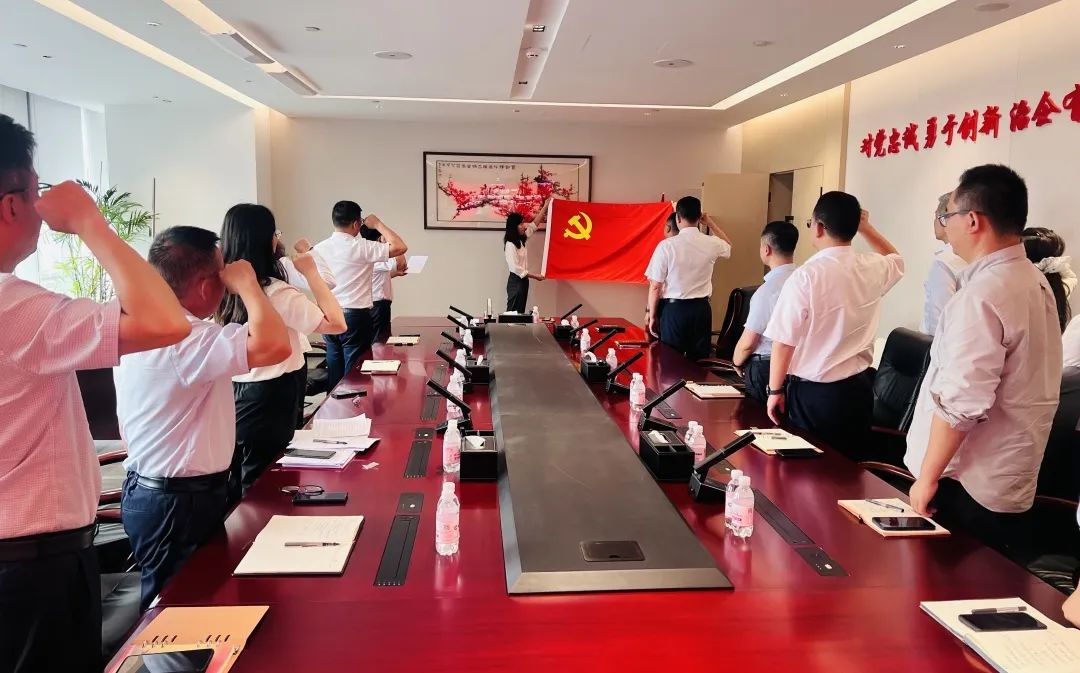 产城集团党委组织开展“学党史、温誓词、践初心”七一主题党日活动,公司全体党员、入党积极分子参加。活动首先集中观看了党史教育系列视频《山河岁月》,从中华苏维埃政权建设历史中汲取群众工作智慧。活动最后,全体党员高举右拳,重温入党誓词,唤醒入党时的庄严承诺与坚定决心。党员干部纷纷表示,未来将以更加饱满的热情、更加务实的作风投身工作,为中国共产党成立104周年献礼。