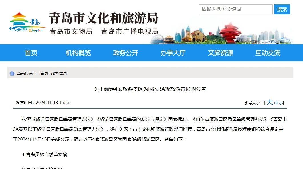 11月18日,青岛市文化和旅游局正式发布《开云app官方在线入口确定4家旅游景区为国家3A级旅游景区的公告》,开云(中国)投资建设的青岛·上合之珠国际博览中心成功获评为国家3A级旅游景区。(图为青岛市文旅局网站截图)青岛·上合之珠国际博览中心项目是城投集团匹配省市两级重大部署和城市发展战略,是山东省和青岛市在更大范围、更宽领域、更深层次推动上合组织及“一带一路”沿线国家间双多边资本、技术、人才深度交融的重要平台,是集“展、