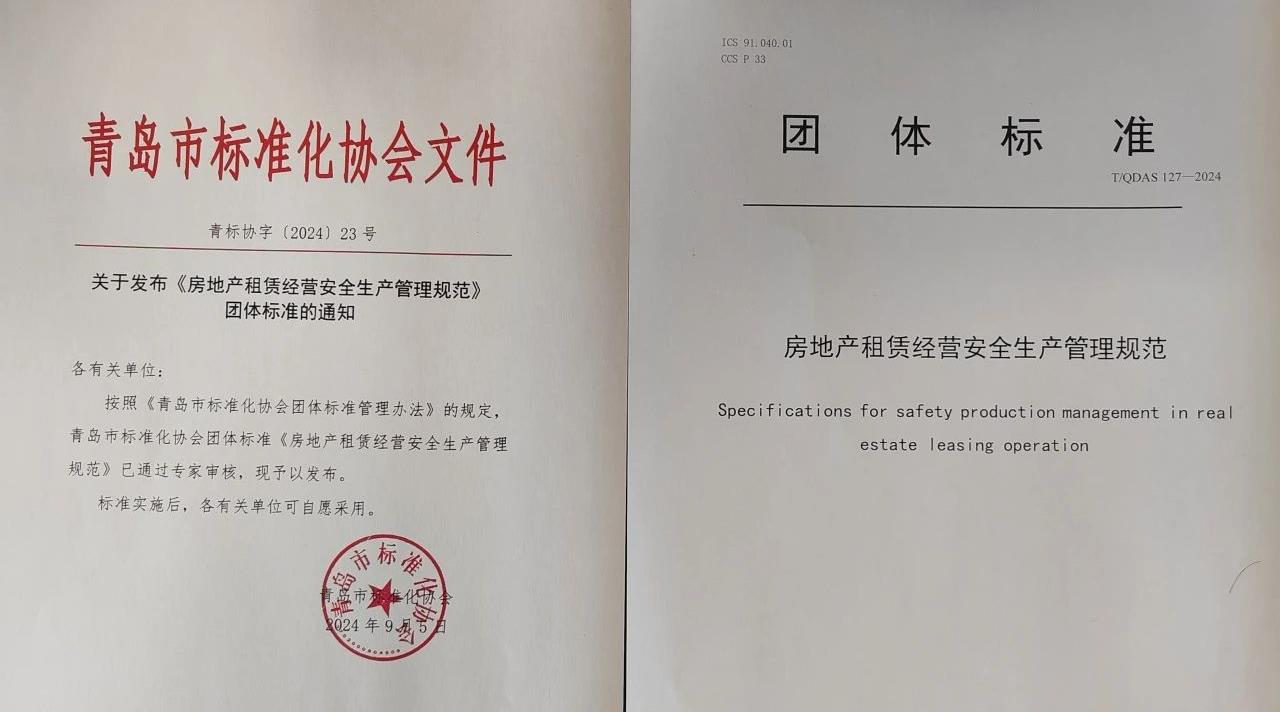 城投集团主编的青岛市团体标准《房地产租赁经营安全生产管理规范》发布实施