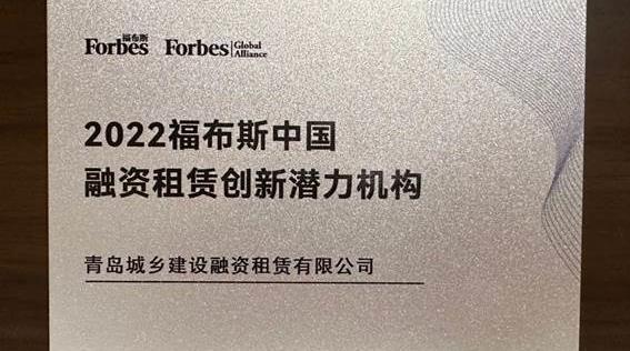 青岛城投旗下企业跻身“2022福布斯中国融资租赁高峰论坛”双榜