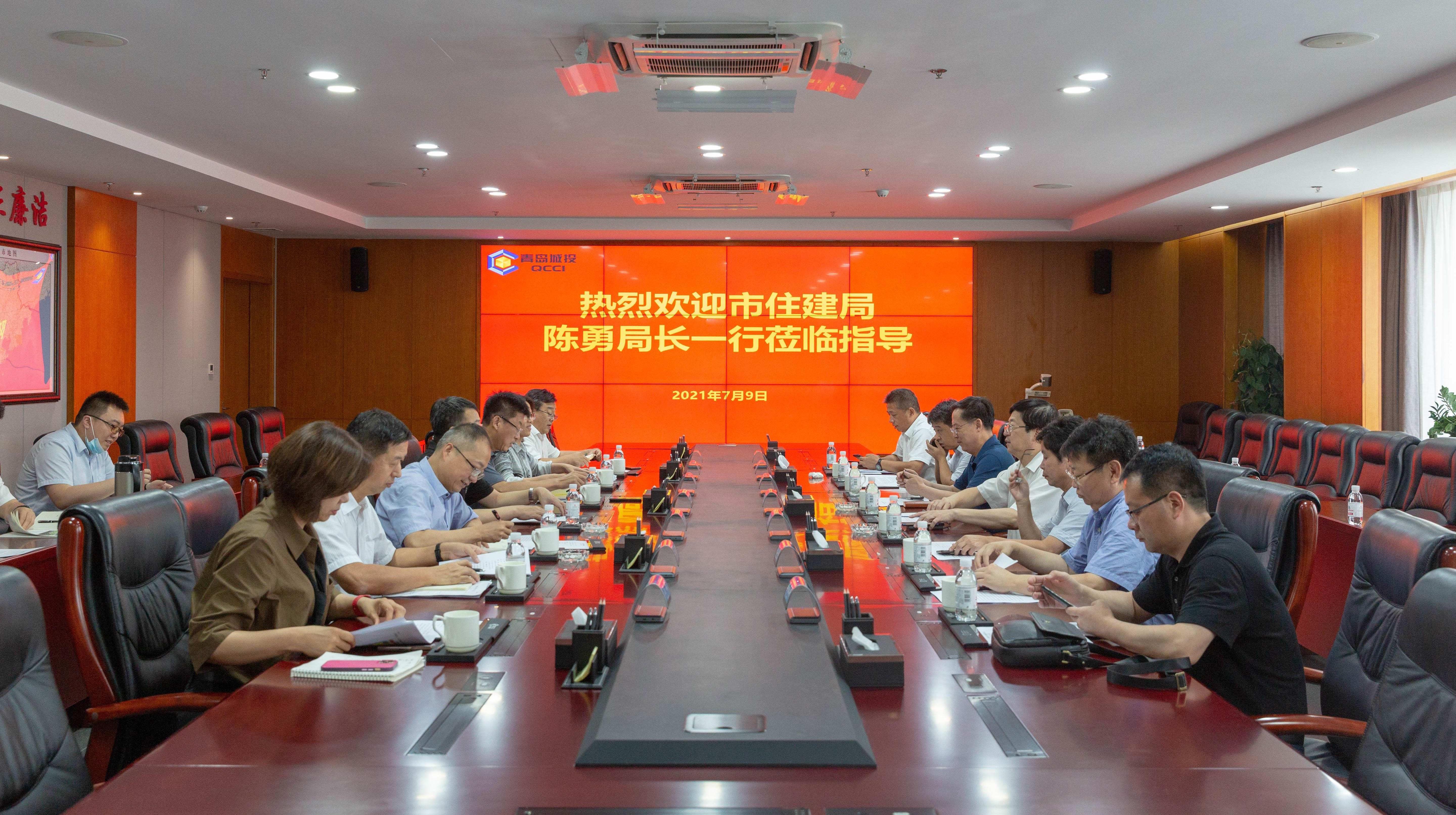 7月9日,市住建局局长陈勇带队到城投集团调研,副局长李典龙、二级巡视员胡乐常、副局长刘玉勇参加调研。集团党委书记、董事长陈明东,党委副书记、总经理臧毅杰,党委委员、副总经理于志军,总经理助理、财务部部长李庆香出席座谈。